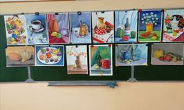 Учащиеся познакомились с видами и жанрами изобразительного искусства. Один из жанров живописи "Натюрморт" преподаватели показали на наглядном примере - продемонстрировали небольшую выставку работ в этом классе. Дети хорошо справились с заданием рисованию натюрморта. Получились яркие интересные работы, дети были довольны.