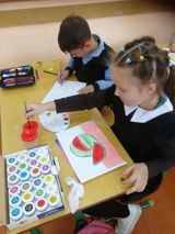 Урок прошёл плодотворно, на котором ученики активно учавствовали - отвечали на вопросы, разгадывали загадки, слушали стихи. По окончанию занятия все остались довольны, у детей получились замечательные рисунки.