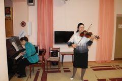 Праздничный концерт украсило выступление преподавателей - Романовой С. С. и Шураевой Н. Н. В их исполнении прозвучали детские песни из мультфильмов «Умка», «Дед – Мороз и лето» и самая любимая новогодняя песня «В лесу родилась ёлочка».
