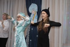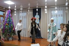 Главные герои этого праздника: Дед Мороз (Попова С. В.), Снегурочка (Козина Катя), Андрей – Воробей (Кильмяшкина Ксения), Дракон (Шабанов Иван), Кот (Азыркина Саша) и ведущая Ибрагимова И. К. ответственно отнеслись к своим обязанностям. Свое праздничное настроение передали присутствующим и зарядили всех на удачу в новом году.