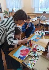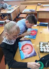 Эту красоту сегодня постарались запечатлеть на бумаге учащиеся 4 «Б» класса СОШ №2, наставником которых была преподаватель Инсарской ДШИ – Чернышева Людмила Владимировна. Она помогла ребятам поэтапно создать каждому свой зимний пейзаж, раскрыв красоту зимы.