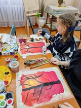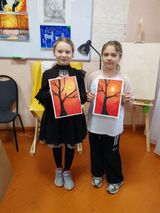 Сегодня мы будем рисовать силуэт дерева на фоне заходящего солнца. Это несложно, а смотрится картина эффектно. Все справились с заданием, посмотрите сами что в итоги получилось.