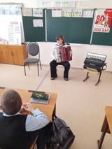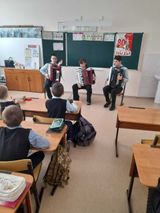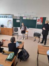 Далее учащиеся музыкальной школы: Слепцова Настя, Артюшкина Вероника, Шураева Маргарита, Кузнецов Виталий, Шабанов Иван исполнили произведения на аккордеоне. Ученики дружно аплодировали юным музыкантам.