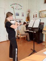 24 марта 2025 года в школе искусств прошёл открытый урок Романовой С.С. с ученицей 5 класса, Ерёминой Варей, на тему: «Работа над кантиленой в классе скрипки».