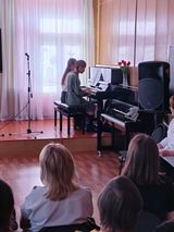 В концерте участвовали младший и старший хор школы, ансамбли преподавательских коллективов «Гармония» и «Мелодия», инструментальное исполнительство. За хорошее ведение концерта хочется поблагодарить ведущих Иноземцеву Екатерину и Кильмяшкину Ксению.