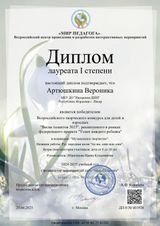 Вероника Артюшкина ученица первого года обучения Инсарской ДШИ народного отделения по классу аккордеон - преподаватель Ибрагимова Ирина Кузьминична, участвовала во Всероссийском творческом конкурсе "Успех каждого ребёнка" в номинации "Музыкальное творчество", категория (8-10 лет).