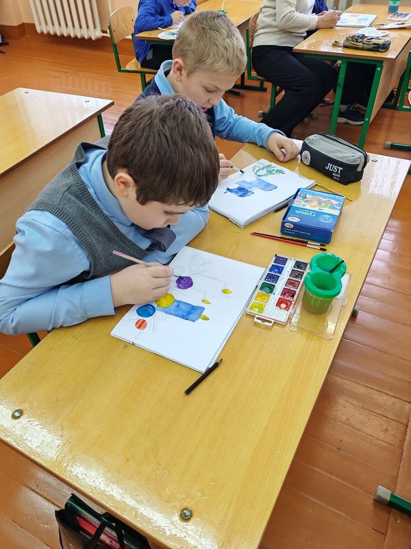 17 декабря преподаватель живописного отделения, Попова Светлана Викторовна провела тематический урок "Новый год!" в 3 классе ИСОШ №2.