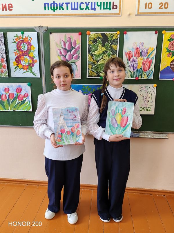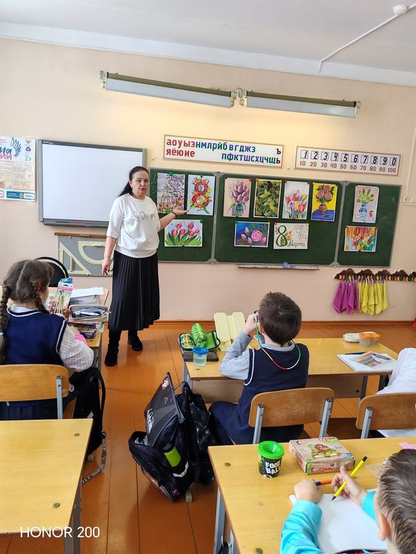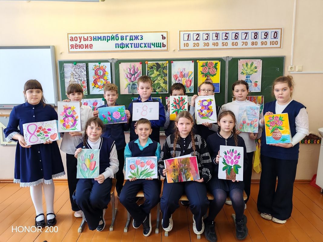 5 марта, преподаватель живописного отделения Попова Светлана Викторовна провела тематический урок в 3 "А" классе ИСОШ №2. Все ребята постарались нарисовать для своих мам замечательные весенние картины.