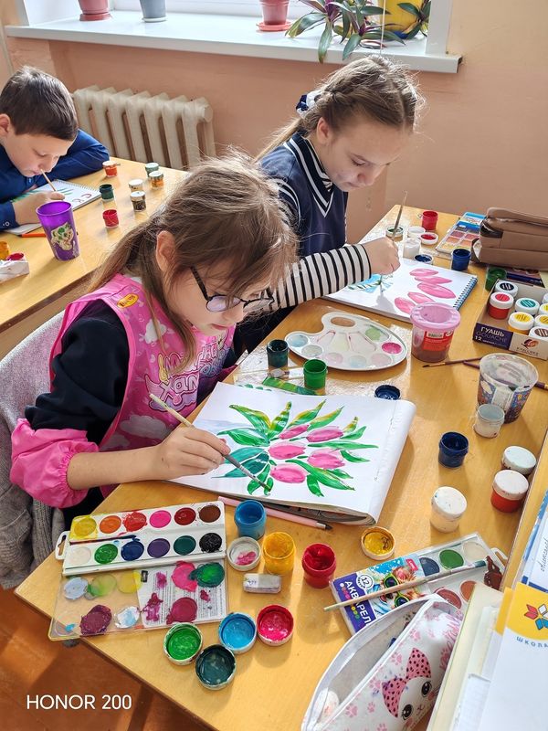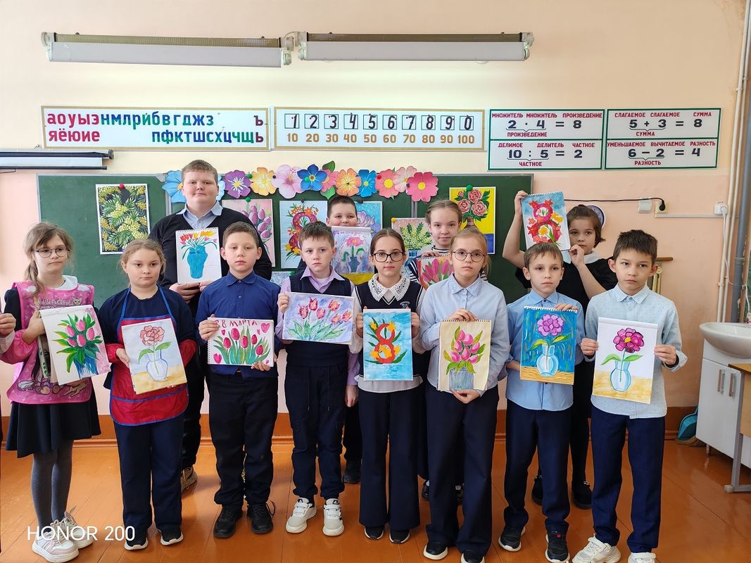 Учащиеся постарались нарисовать красивые открытки в подарок. Всё остались довольны результатом своей работы!
