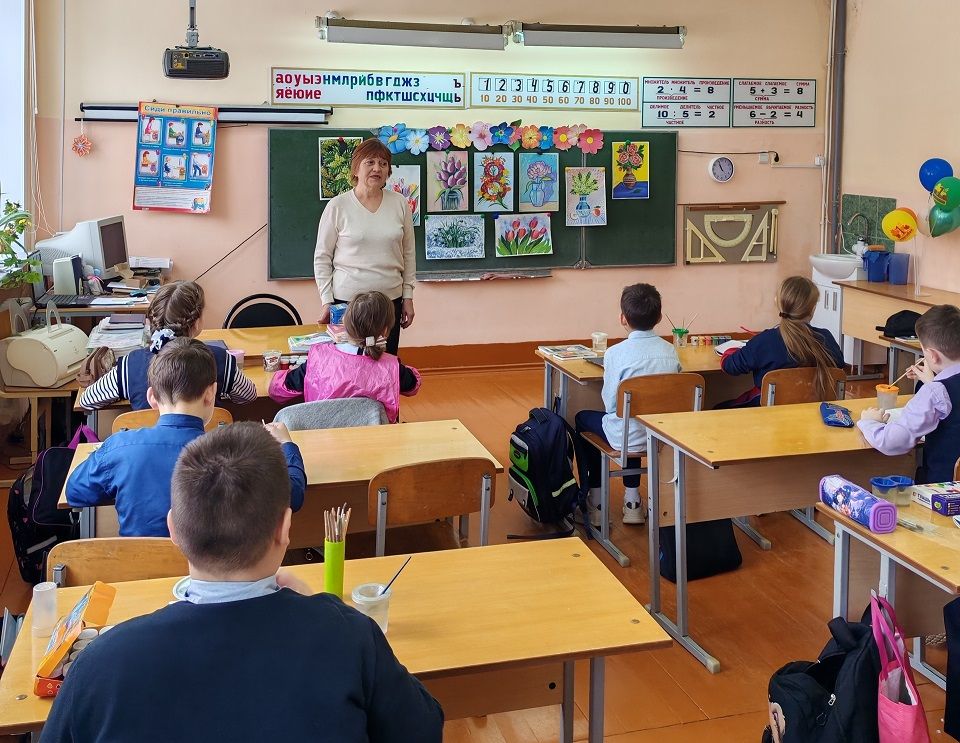 Сегодня преподаватель "Инсарской ДШИ" Чернышёва Людмила Владимировна провела тематический урок "Открытка для мамы" в 4"Б" классе СОШ № 2.