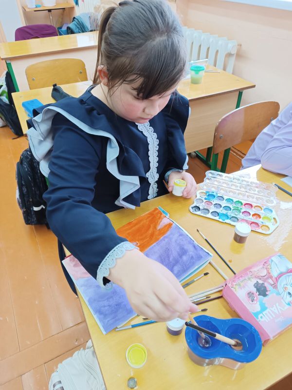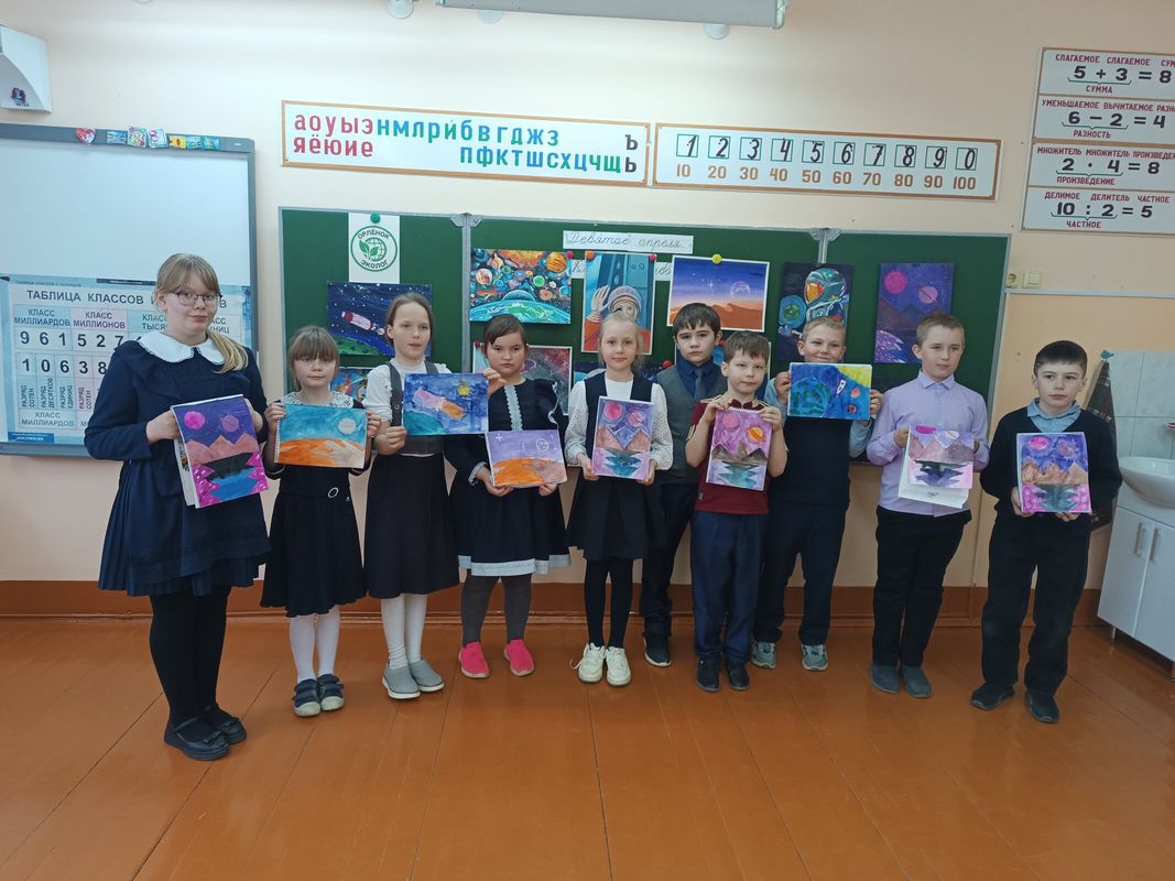 Учащиеся с большим интересом посмотрели выставку работ на тему космонавтики и нарисовали свои яркие, красочные работы.