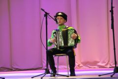Под собственный аккомпанемент он исполнил несколько музыкальных композиций: «Ой, при лужке, при лужке», «Катюша», «Одинокая гармонь», «Солнышко», «Смуглянка». Зал встречали его исполнение сердечными, дружными, громкими аплодисментами.