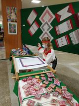 Преподаватель декоративно – прикладного отделения Чернышева Людмила Владимировна представила мордовскую вышивку учащихся Школы Искусств и свои работы с национальной вышивкой. Пластилиновая живопись ,которую сделали учащиеся, очень понравилась и жюри, и зрителям. Украшением экспозиции выставки стал мастер – класс ученицы Марии Кожевниковой – вышивка столешницы по мокшанским мотивам.