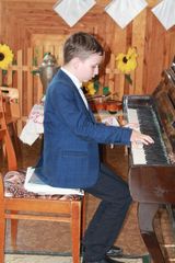 Красная Шапочка приготовила сказочные вопросы. Козина Катя исполнила «Детскую пьесу» А. Гедике (ф-но). Бравые солдаты тоже были приглашены на праздник – Атянина Маша: Д. Шостакович «Марш» (ф-но). Веселый скоморох развлек гостей шутками и прибаутками - «Сын богатого» А. Пивкина исполнил Матвеев Матвей (баян). Скоморохи предложили отгадать загадки. Шабанов Иван исполнил пьесу Б. Самойленко «Ежик» (аккордеон). Но и какое же сказочное торжество без Емели на печи – Морару Даниил – Э. Сигмейстер «Поезд идёт» (ф-но). Горный Король, со своими придворными, гномами и троллями, был приглашен на торжественный бал – Ватолин Костя исполнил пьесу «В пещере горного короля» Э. Грига (ф-но). Вокальное поздравление сказочных героев песней А. Архиповой «Карусель» - дуэт Матвеев Матвей и Козина Катя (аккомпанивал Матвей – баян). Музыкальный номер скрипачей Зориной Евы, Романовой С. С. «Ча – ча – ча» П. Мартина завершил сказочный бал.
