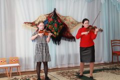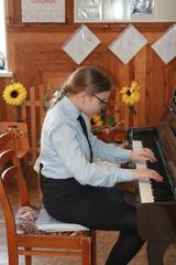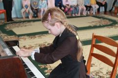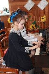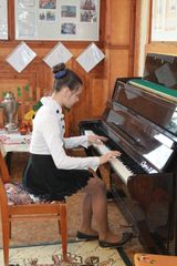 Музыкальный подарок преподнесла Еремина Варя – В. Калинников «Журавель» (скрипка). На балу для Короля, Королевы и Принцессы от имени Золушки «Вальс» К. Вебера из оперы «Волшебный стрелок» прозвучал в исполнении Кильмяшкиных Ксюши и Жени (фортепианный ансамбль).