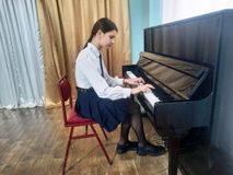 Учащиеся класса фортепиано – Кильмяшкина Ксюша, Морару Даниил исполнили весёлые частушки про сольфеджио. А ведущая охарактеризовала звучание фортепиано, что оно может запеть человеческим голосом или звучать как целый оркестр.