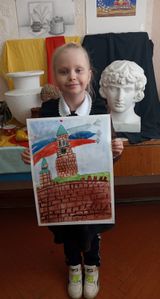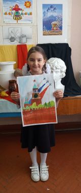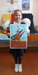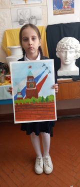 Учащиеся живописного отделения 2 класса, преподаватель Попова Светлана Викторовна, участвуют в акции "Рисуем Победу". Все нарисовали парад на Красной площади.