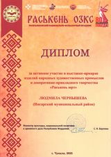 «Раськень озкс» («Родовое моление») – это зрелищный народный праздник встреч и добрососедства. Фольклорно-обрядовые представления, концерт профессиональных и самодеятельных творческих коллективов из Мордовии и других регионов нашей страны. В «Этнодеревне» была представлена выставка-ярмарка народных художественных промыслов и декоративно-прикладного творчества "Раськень юрт", где можно было полюбоваться и приобрести уникальные изделия ручной работы, познакомиться с лучшими мастерами республики. В ней приняла участие и была отмечены дипломами - преподаваьель декоративно - прикладного отделения Чернышева Л.В. и вся творческая делегация Инсарского района.