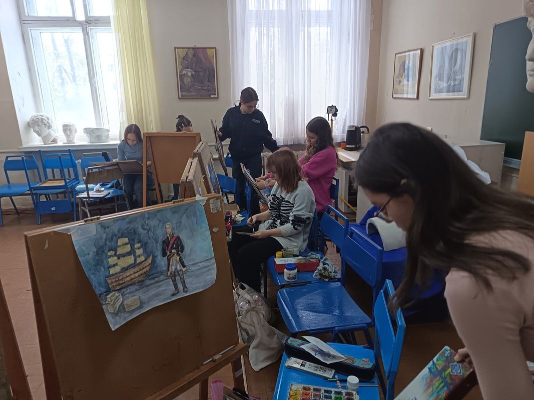 В этом году тема станковой композиции была посвящена Святому Праведному воину адмиралу Фёдору Ушакову — великому русскому флотоводцу, чья личность и исторические подвиги стали источником вдохновения для юных художников.
