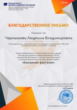 Ученица 3 класса декоративно-прикладного отделения Акимова Елизавета приняла участие во Всероссийском конкурсе детских поделок «Бумажная фантазия» и заняла почетное 2-ое место с поделкой из цветной бумаги «Цветы для мамы».