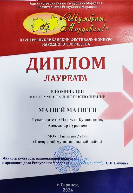 | Наименование образовательных программ, в реализации которых участвует педагогический работник | Дополнительная предпрофессиональная образовательная программа в области музыкального искусства "Народные инструменты" специальность "Баян" |