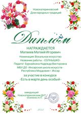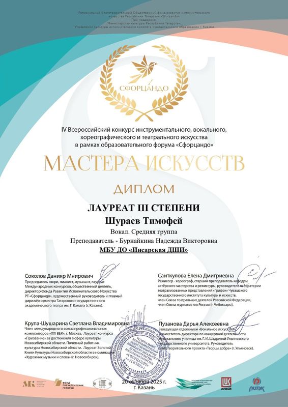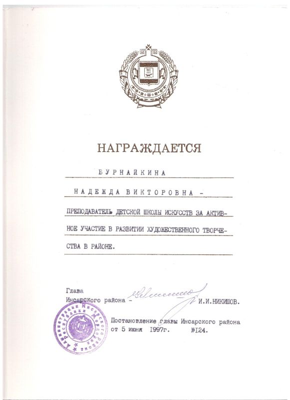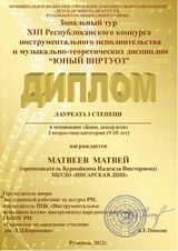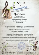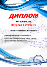 | Сведения о повышении квалификации (за последние 3 года) | Удостоверение о повышении квалификации 643104222136; рег.номер 1429 от 25.04.2024 г. по дополнительной профессиональной программе "Современные образовательные технологии и методики обучения игре на народных инструментах (баян, аккордеон)" в объёме 36 часов. |