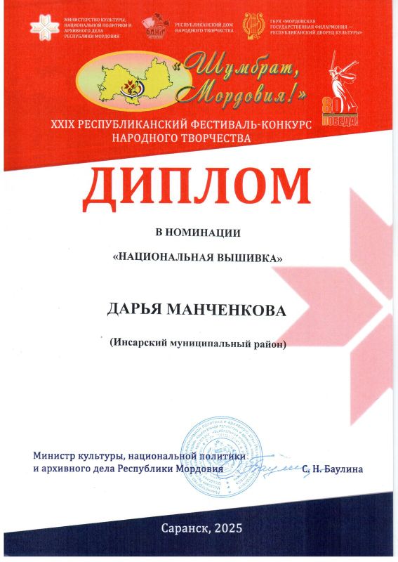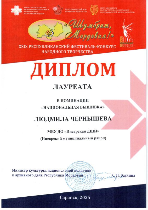 | Уровень профессионального образования, квалификация | Среднее специальное образование. Саранское художественное училище. Специальность - художественное вышивание и кружевное производство, квалификация: художник - мастер.1983 г. |