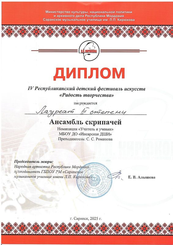 | Занимаемая должность | Преподаватель по классу "Скрипка" |