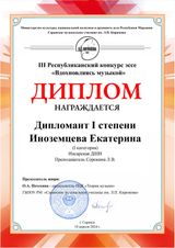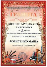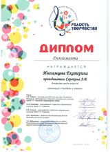 | Сведения о повышении квалификации (за последние 3 года) | Удостоверение о повышении квалификации 622418819368 рег. номер 133610 от 17.01.2023 г. по дополнительной профессиональной программе "Методические аспекты преподавания фортепиано в ДШИ" в объёме 72 часа |